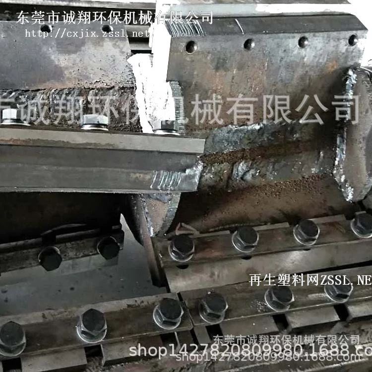 该机是我厂参照国外同类型产品设计制造的国内首款大型塑料破碎机。转刀体和轴承座均为铸钢件,机架为优质厚钢板焊制,机器的刚性特强,故转刀、定刀之间隙可以调整到0.5mm。该机特点不仅在于有较高的工效,而且随时可以打开机身部分与放下筛网,对于调试、维修及清理工作均带来极大方便。本机主要用于破碎聚乙烯、聚苯乙烯、聚氯乙烯等热塑性塑料及橡胶制品。进料口尺寸为550×400mm,因而较大的废旧橡塑制品、边角料或注射浇口等均可直接投入机内进行破碎。该机用于破碎大尺寸的废旧塑料制品,不需分割即可一次性破碎,实为大中型塑料制品厂的理想设备。目前国内很多大型公司都在使用我厂该型号破碎机。